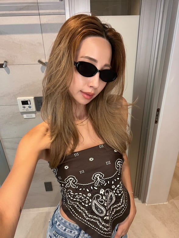 トレンド感のある横長シルエットが印象的なキャットアイのオバールフレーム。